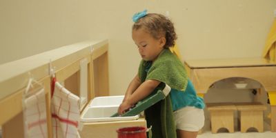 Practical life is an area of particular emphasis for toddler-aged children, as they are the skills that children need to develop to care for themselves, their environment, and their community. Broken out into control of movement and grace and courtesy, practical life activities are simple and can be accomplished by each child, our teachers support these growing skills with activities such as putting on/taking off shoes, washing hands, watering plants, feeding the fish, and preparing and serving snacks.
